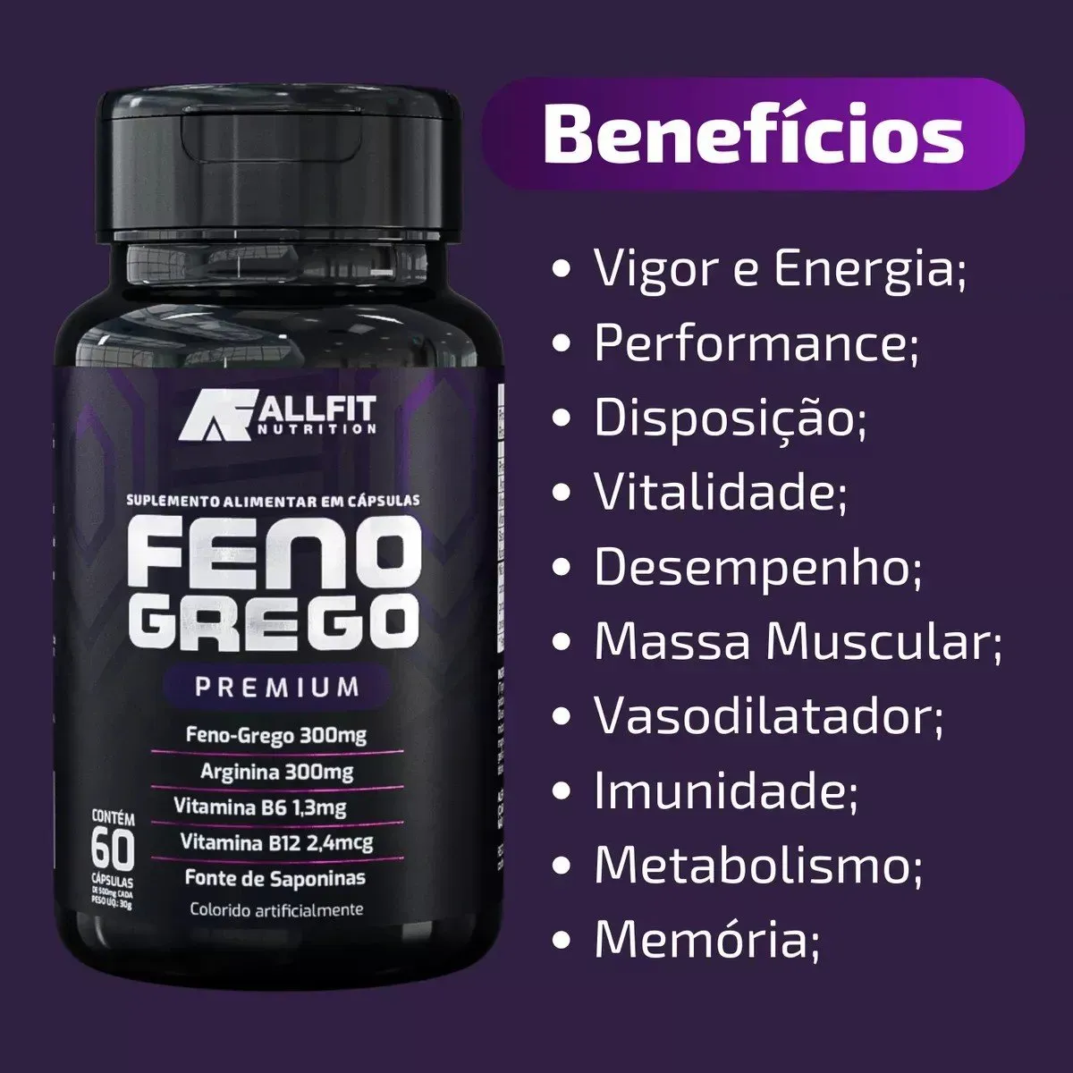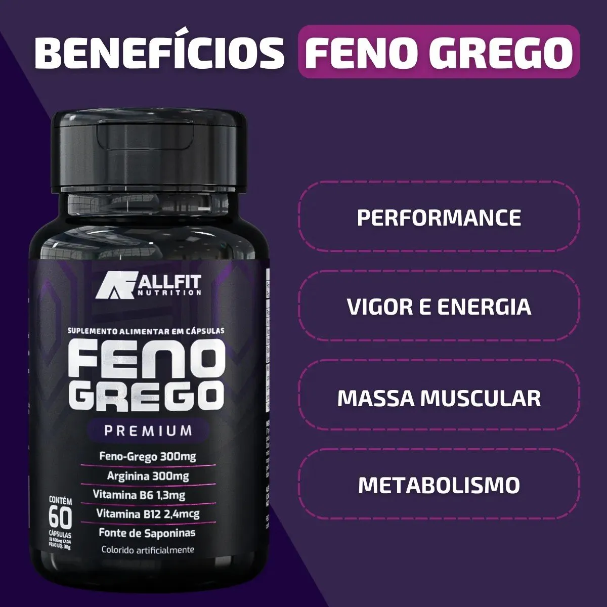 Feno Grego Premium 300mg com Arginina e Vitaminas B6 e B12 – 60 Cápsulas Allfit Nutrition