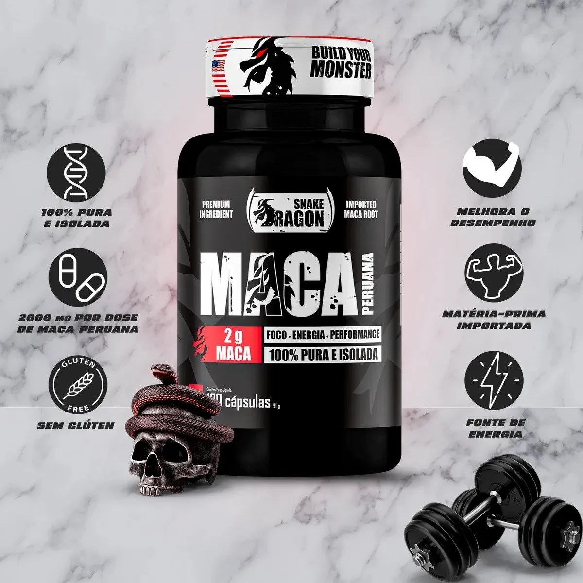 O Kit com 3 Maca Peruana 100% Pura Snake Dragon Premium é um suplemento nutricional em cápsulas, formulado exclusivamente com maca peruana pura, ideal para quem busca energia, vitalidade e apoio nutricional de forma natural.