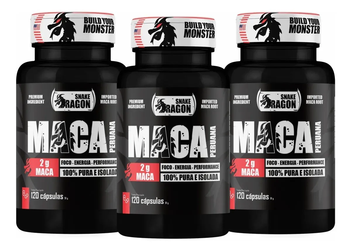 Kit com 3 Maca Peruana 100% Pura – 120 Cápsulas Snake Dragon Premium
