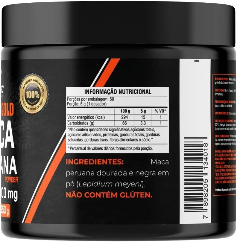 A Maca Peruana 5000mg Importada Black e Gold Sunflower é um suplemento alimentar em pó, produzido com matéria-prima importada e cultivada nos Andes Peruanos, ideal para complementar a rotina de energia e vitalidade de homens e mulheres.
